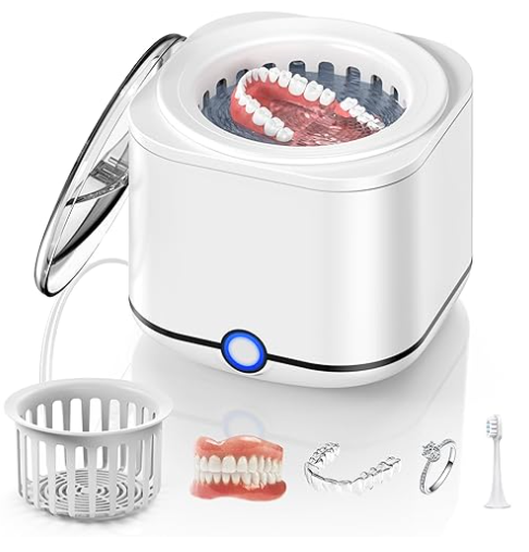 Ultrasonic Retainer Cleaner, 48kHz Retainer Cleaner Machine for Dentures, Mouthguard, Braces, Night Guard, Toothbrush, Jewelry with 7.8OZ Dental Cleaning Pod-Cool White